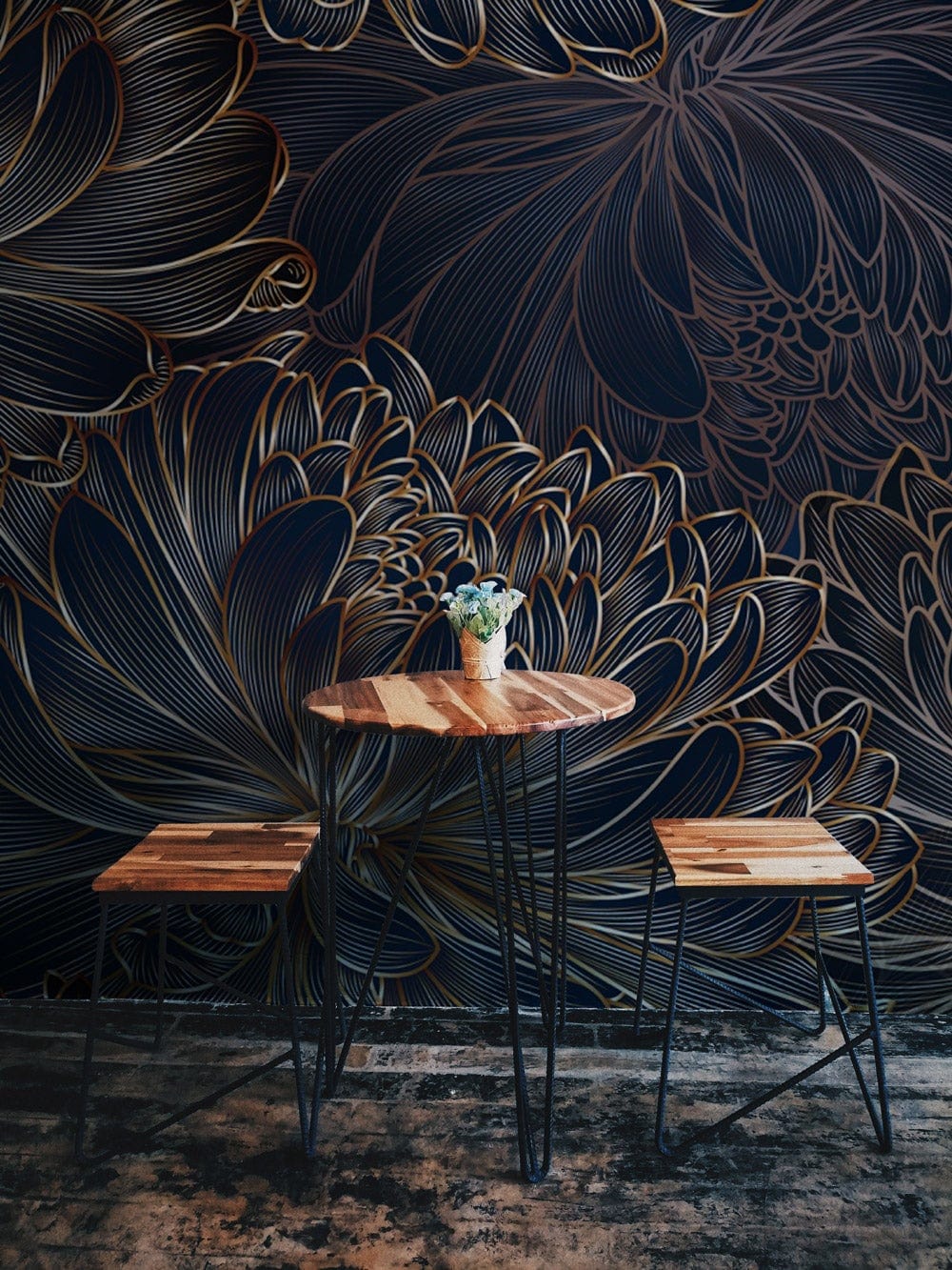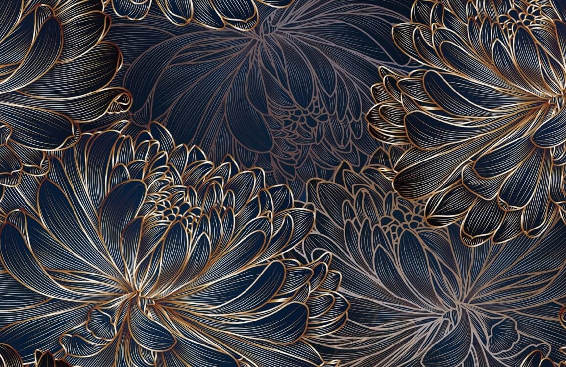 Add a touch of glamour to your walls with this eye-catching wallpaper mural. The spellbinding motifs of chrysanthemum in gold accents, complete with the details on the petals, make it a sight to behold. Decorate your living room with this consummate refinement that spells pure luxury. Impress your guests with this masterpiece of a wall mural.