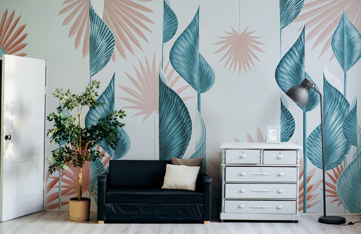Transform your home with this beautiful Metal Leaves Art Wallpaper Mural. The perfect combination of rustic and boho design, our metal leaves wallpaper is sure to make you feel as if you've been transported to another world. Perfect for a bedroom, dining room, or living room, this tropical layout will create a warm and cozy feeling to your walls while showing off the best parts of nature in your living space.
