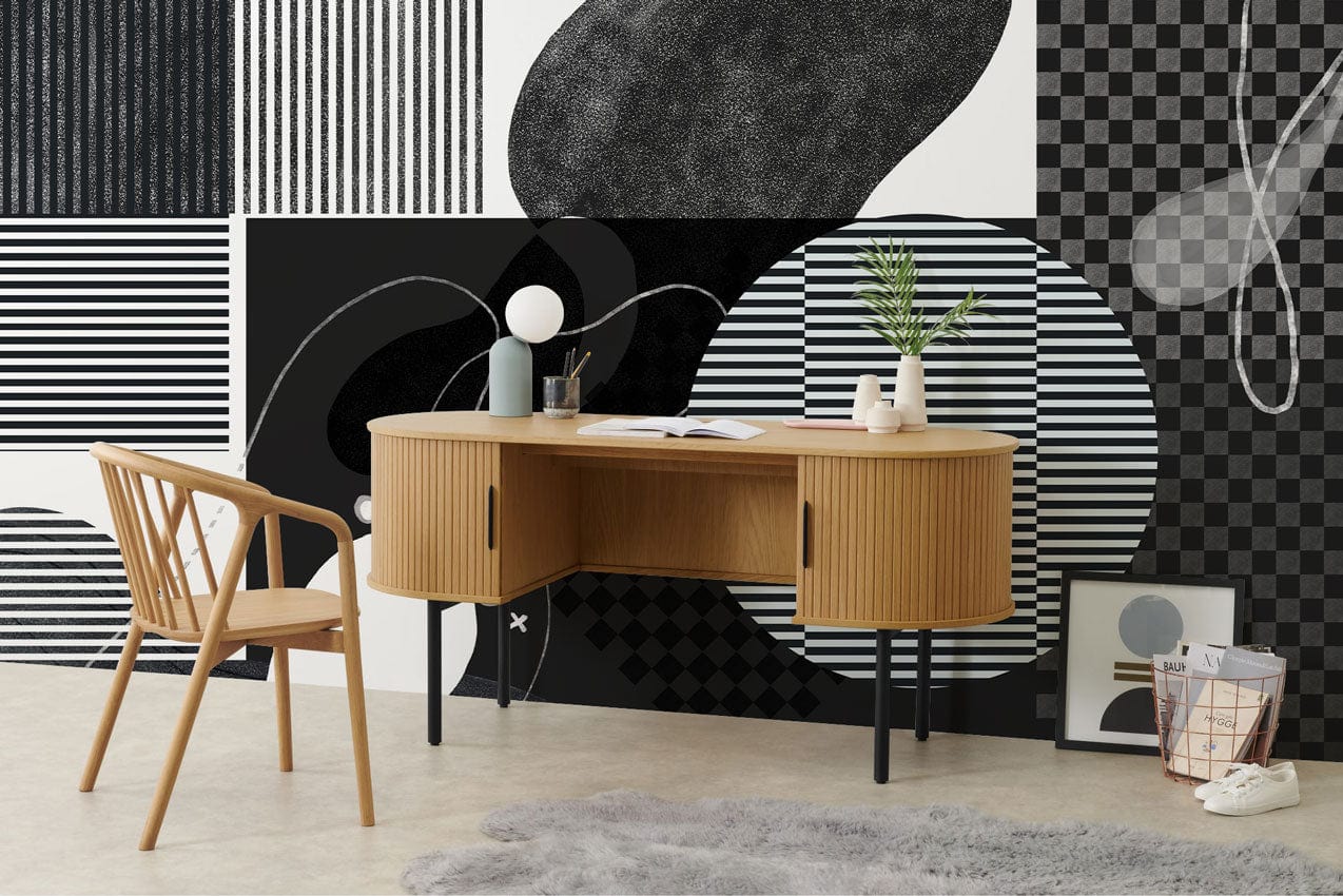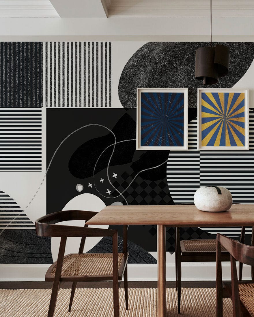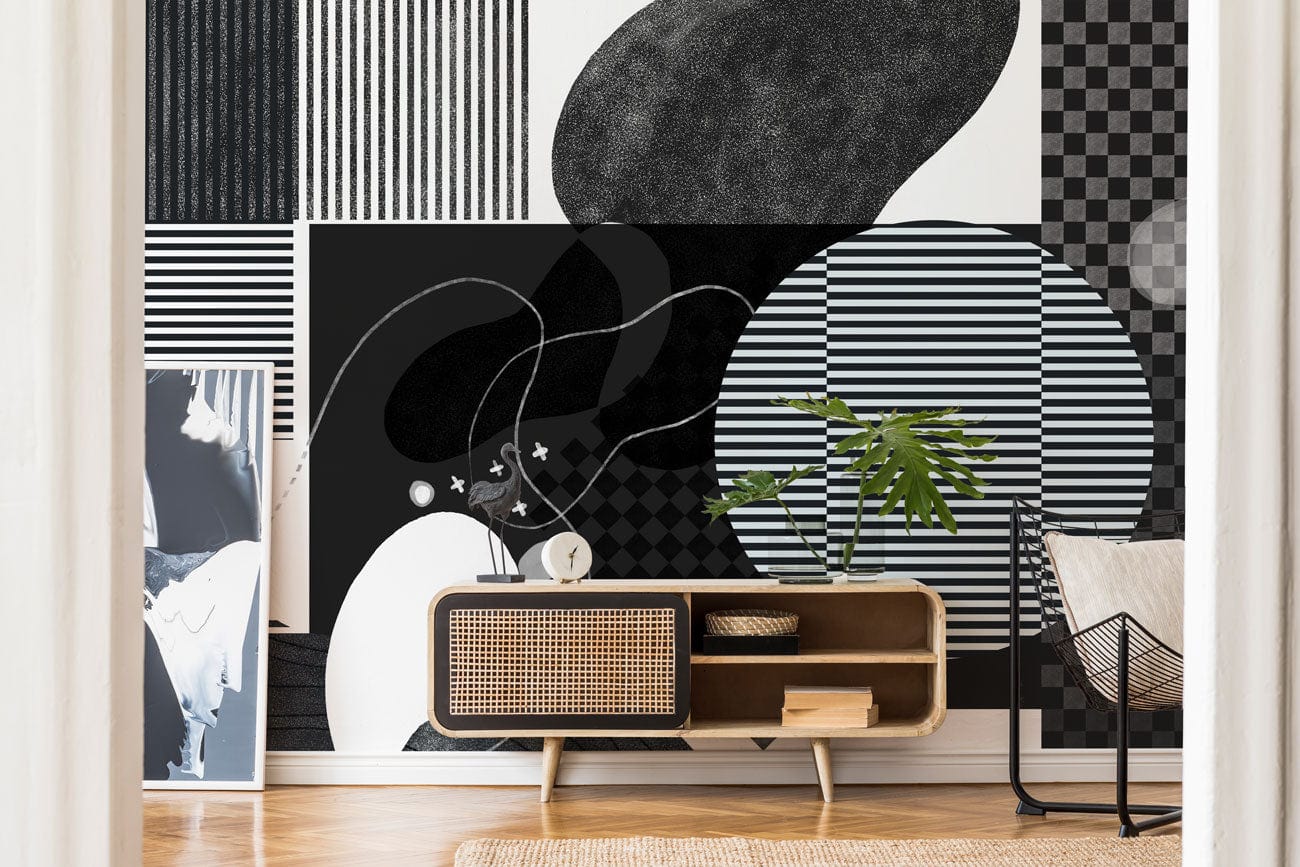 Dive into the world of abstract elegance with this Black & White Shapes Wallpaper Mural. Its intricate interplay of geometric forms and textured patterns creates a striking visual narrative, inviting a sense of sophistication into any space. The monochrome palette lends a timeless charm, making it an exquisite addition to both contemporary and classic interiors.