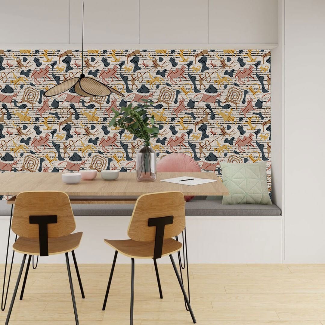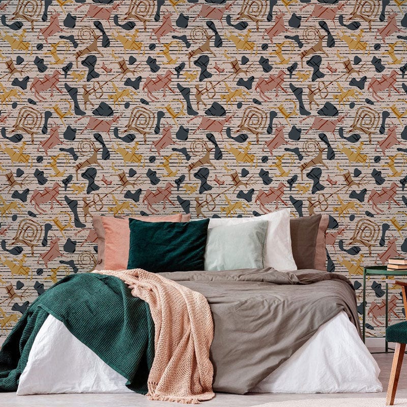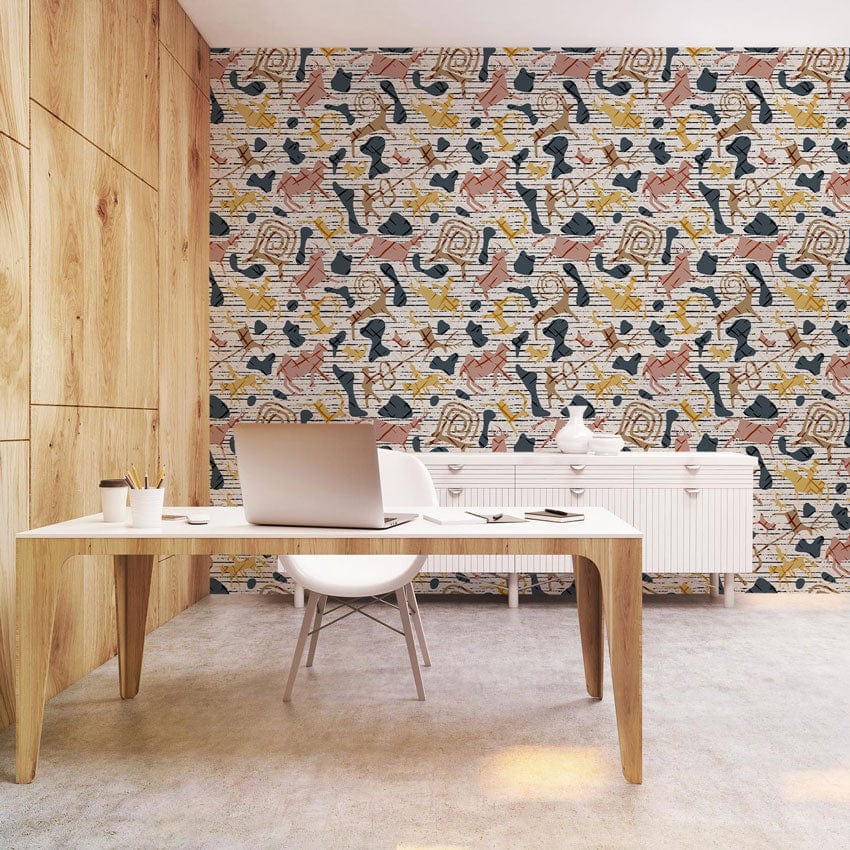 Immerse yourself in the captivating allure of this Abstract Geometric Artistic Expressions Mural Wallpaper, where intricate patterns dance across the surface. Echoing a symphony of mustard yellows and subdued coral hues, layered with enigmatic navy accents, the design presents a sophisticated tapestry of artistic expression. Each geometric element adds a touch of contemporary elegance, seamlessly blending with modern and eclectic interiors. The textural depth and rhythmic forms create a visual feast, enhancing any living space with both dynamic energy and timeless appeal.