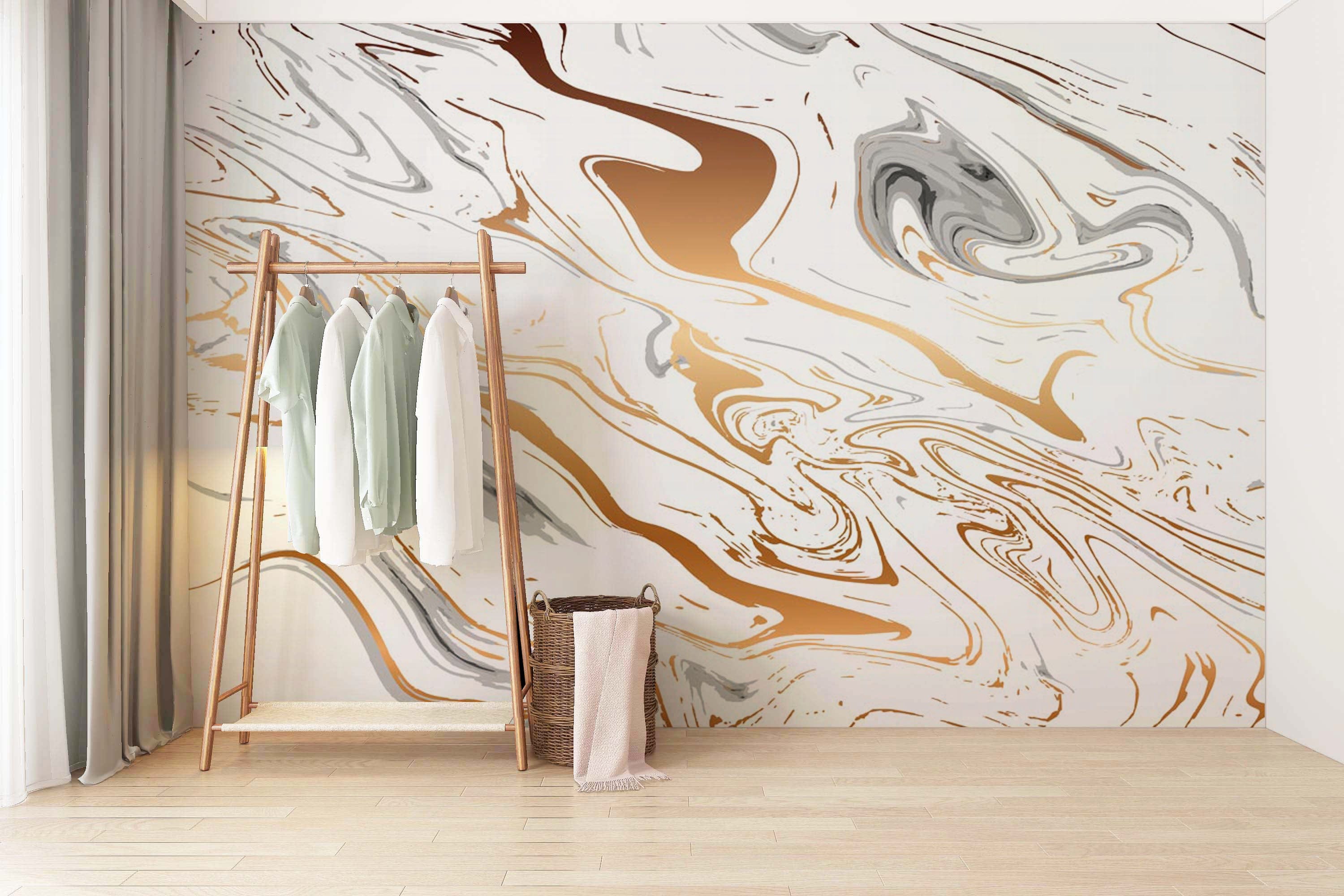 Immerse yourself in the sublime elegance of this Abstract Marble Wallpaper Mural, where swirling patterns of rich caramel, soft ivory, and muted grey intermingle to create a stunning visual masterpiece. The intricate marbling captures the essence of natural stone, offering a luxurious backdrop that complements both contemporary and classic décor. Perfectly suited for those seeking a refined and artistic touch, this mural invites sophistication into any environment.