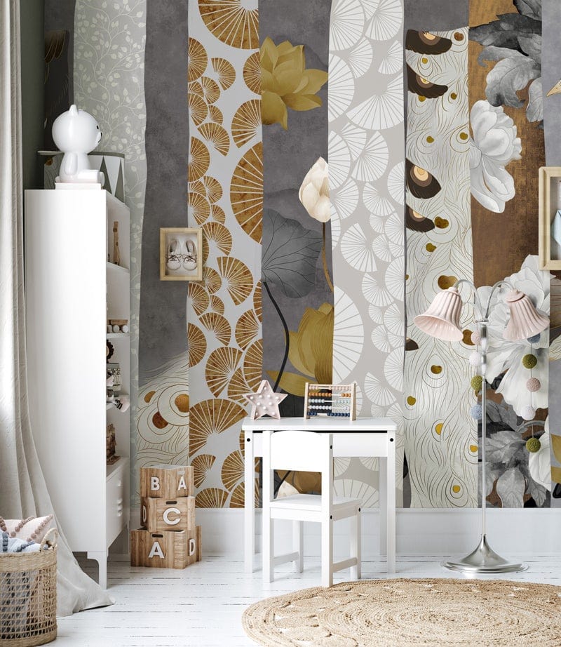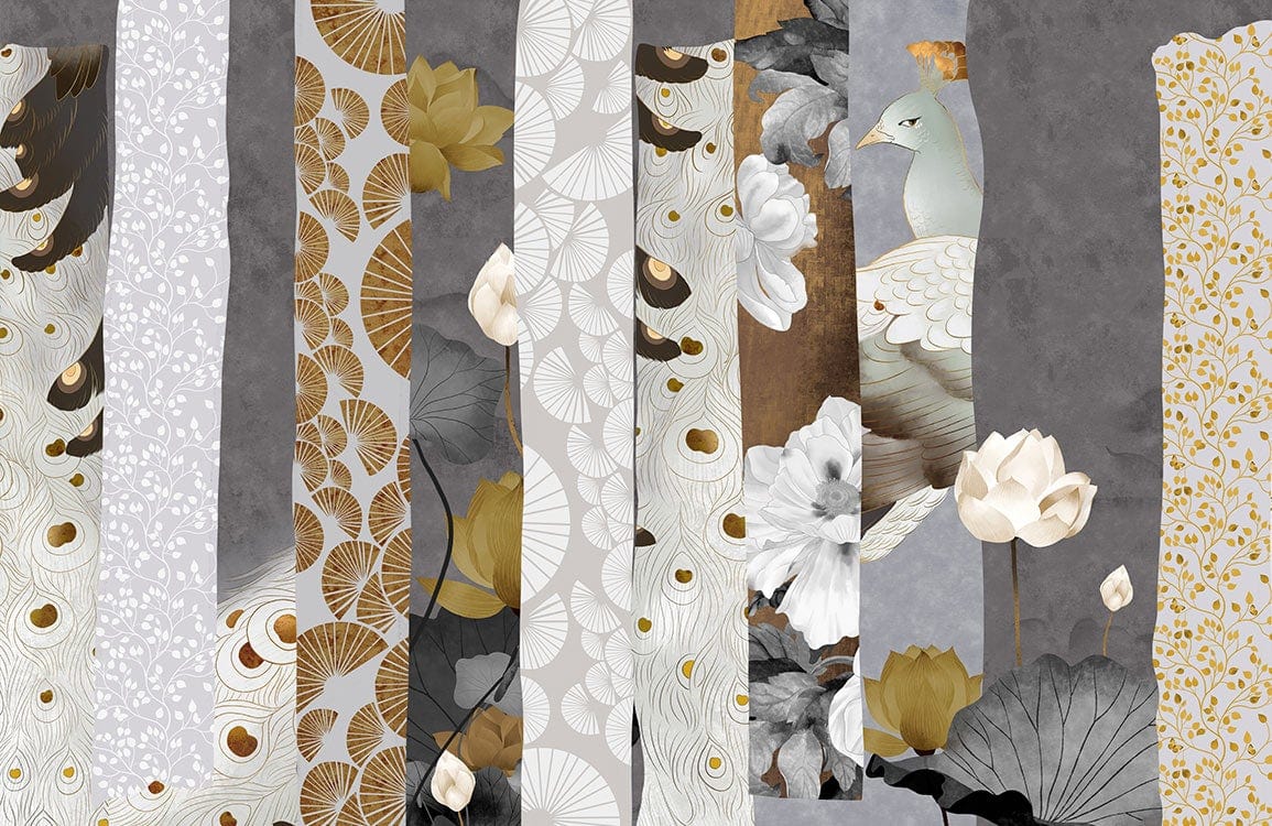 Bring your wall to life with this elegant art deco wallpaper mural. This wallpaper combines a variety of beautiful images in a hamonious way with simple grace. Add a peaceful and calm atmosphere to your living room, bathroom, bedroom and dining hall. Work perfectly to your modern style furniture and home decors.