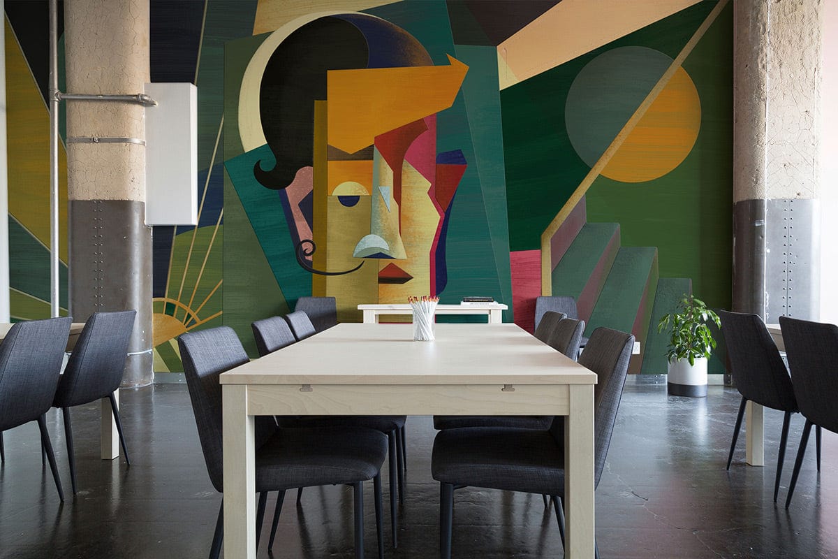 Immerse yourself in the abstract elegance of this Picasso-inspired wallpaper mural, where geometric shapes and bold lines unite in a dance of creativity. The artwork's rich hues and intricately layered textures invite a sophisticated blend of modern art and timeless design into any room. Ideal for spaces that seek both vibrancy and a touch of artistic flair, this mural becomes the centre of conversation with its dynamic visual narrative.