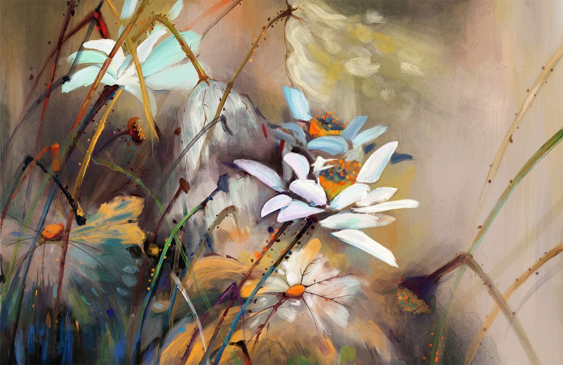 Our Abstract Pigment Flowers Wallpaper Mural is a fresh, colourful, and vibrant floral design with a rich gradient of white flowers on a water colour canvas. This flower wallpaper is a beautiful addition to your bedrooms, living rooms, and kitchens and also looks great when hanging on your walls or used as a floor decal. This floral background is a wonderfully free form of art that can be paired with our other flower and water colour patterns to create the perfect home or business interior design.
