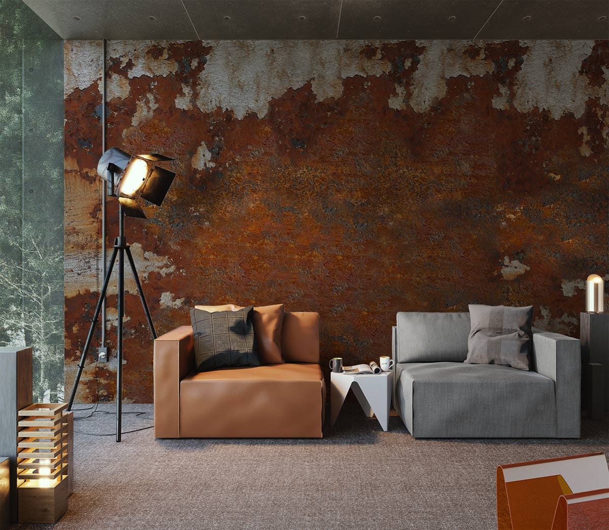 Immerse your space in an evocative blend of industrial artistry with the Accent Wallpaper Mural. Its intricate fusion of rust and decay evokes raw, natural beauty, capturing the essence of weathered steel and earthen textures. Perfect for those who appreciate the elegance of patina and the stories that aged surfaces tell, this mural brings an authentic touch to any setting, creating a distinctive atmosphere that stands the test of time.