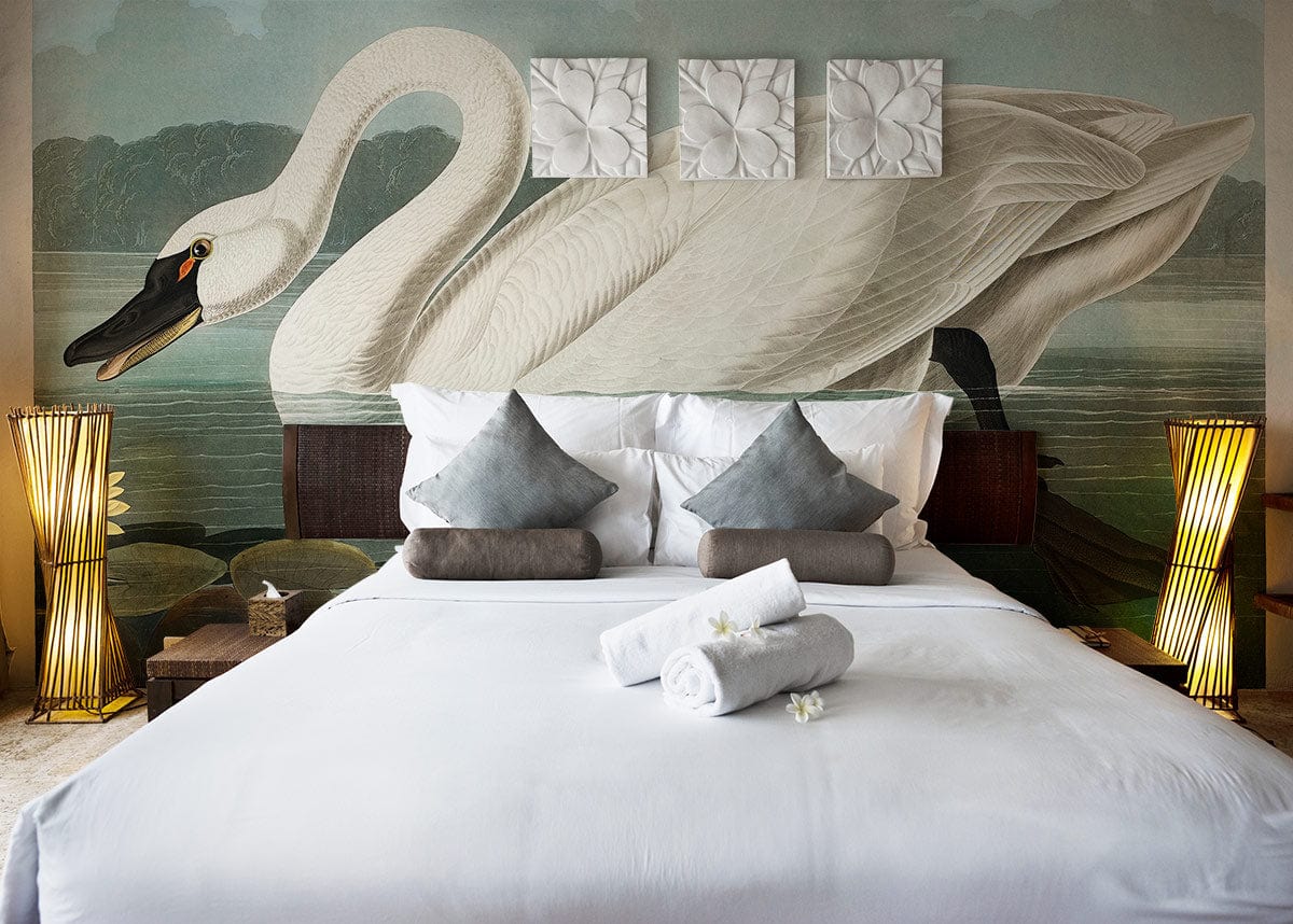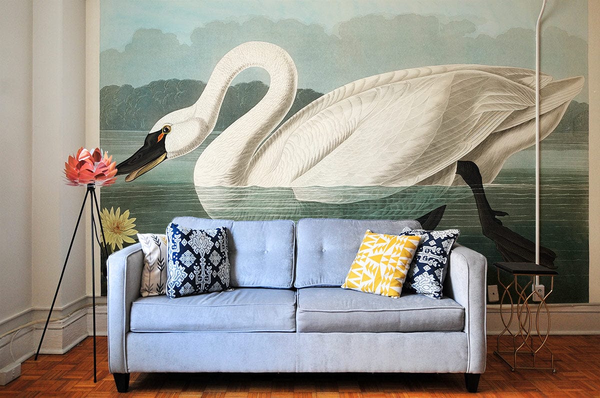 The American Swan Wallpaper Mural graces your walls with the serene elegance of a swan gliding through a tranquil waterway. This captivating design blends soft, muted tones with exquisite artistry, portraying delicate water lilies and serene reflections that create a sense of peacefulness. Perfect for infusing any space with a timeless narrative, it speaks to both classic and contemporary sensibilities.