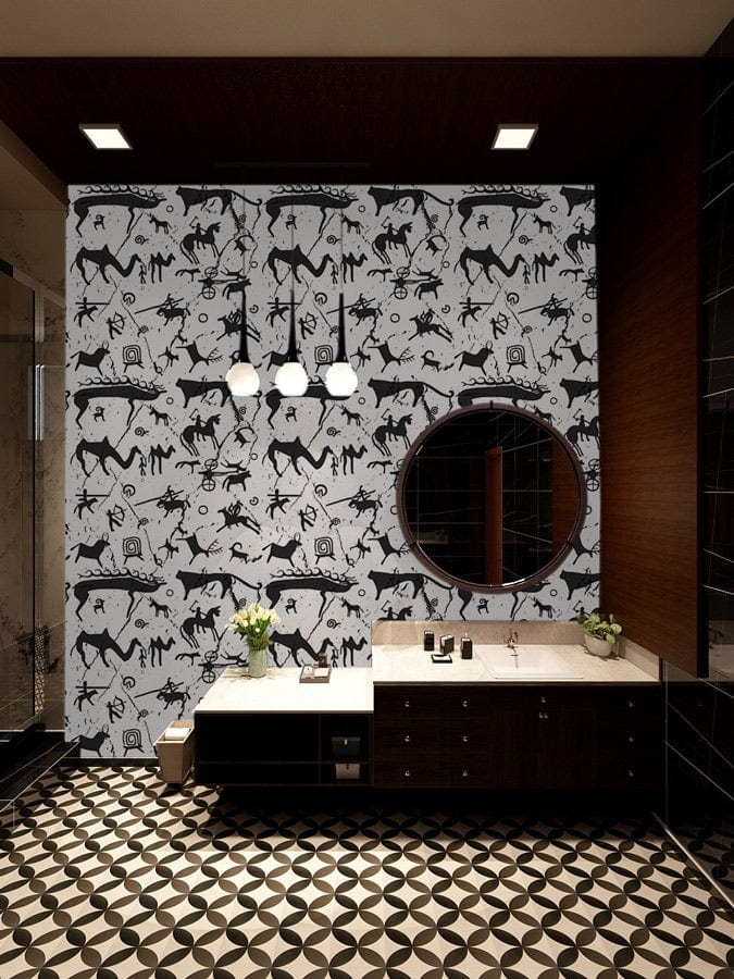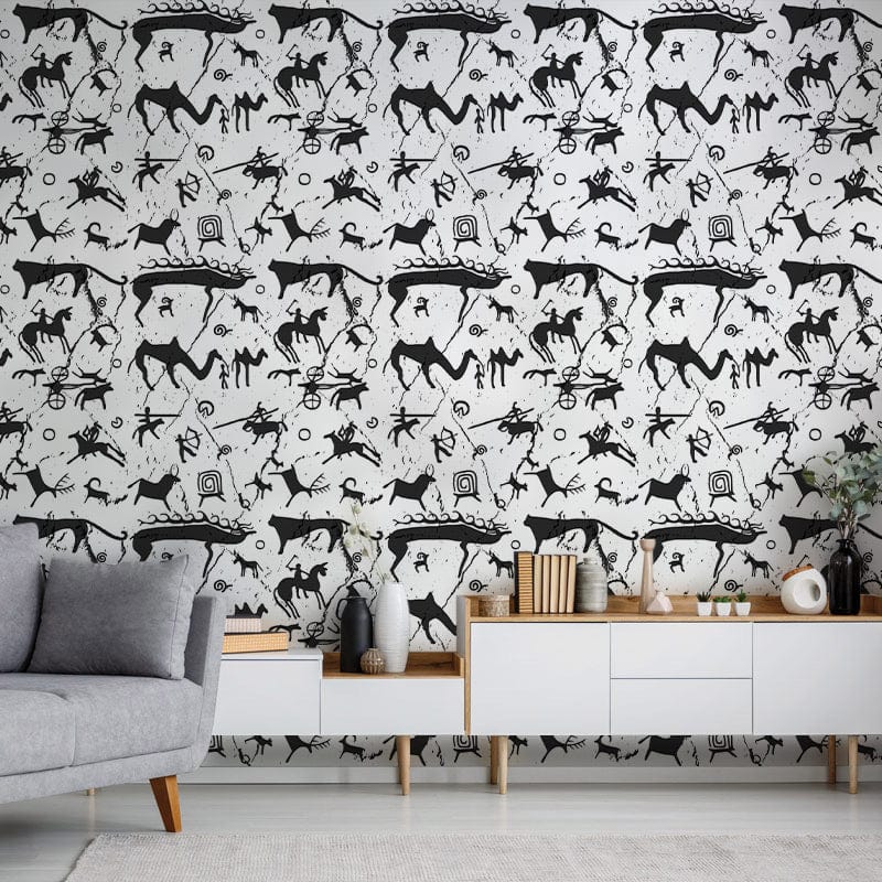 Immerse your space in the enchanting allure of the 'Ancient Desert Tales' mural wallpaper, where timeless artistry meets contemporary elegance. The design showcases a harmonious tapestry of desert motifs and ancient symbols, intricately illustrated and set against a pristine backdrop, offering a captivating narrative that sparks the imagination. Ideal for creating a sophisticated focal point, its artistic details and textured finish lend a sense of depth and cultural richness to both modern and traditional interiors.