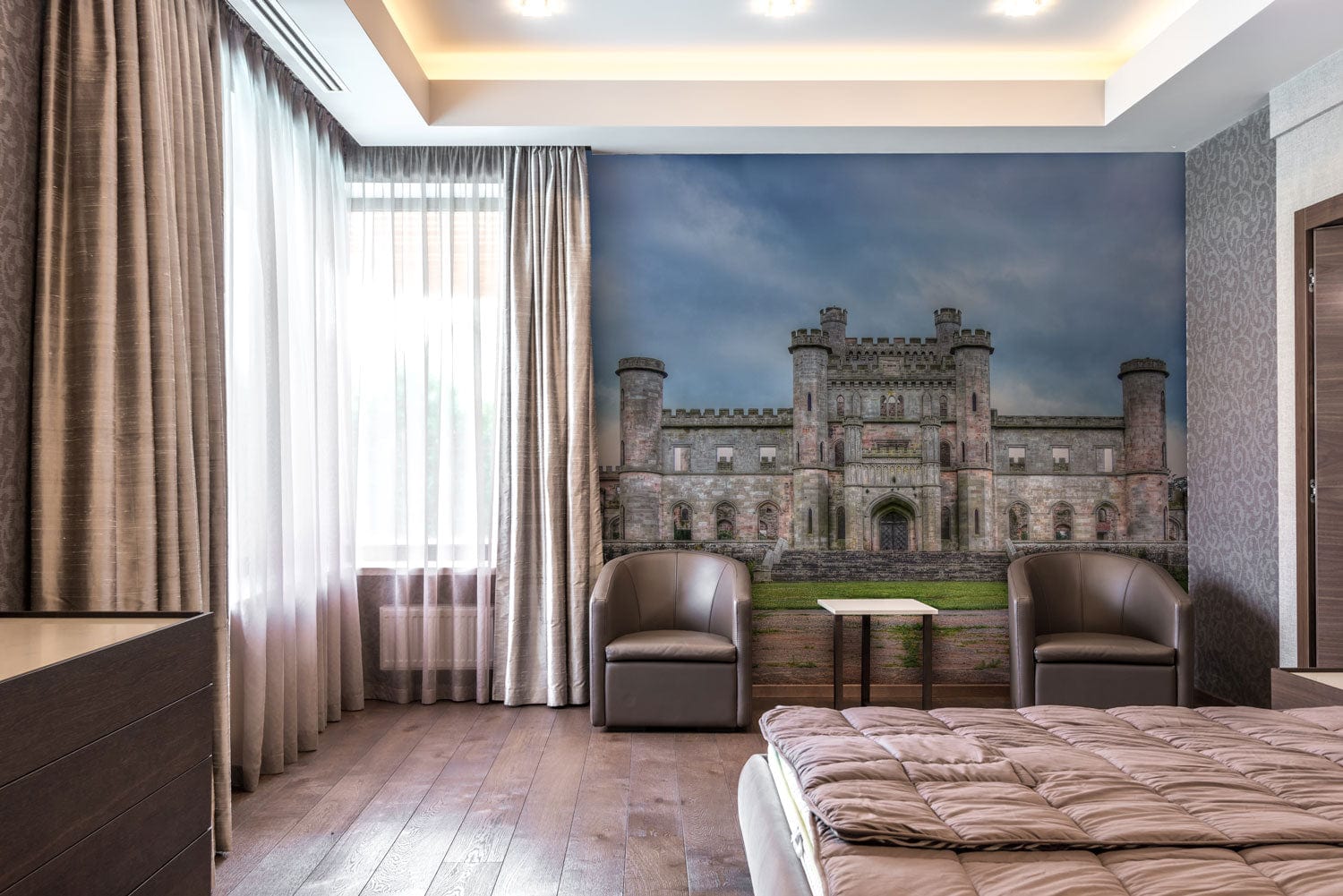 Immerse your interiors with the majestic allure of the Ancient Lowther Castle Wallpaper Mural. This stunning design captures the grandeur of historic architecture, featuring intricate stonework bathed in soft, muted tones. Perfectly suited to bring a touch of refined elegance to any space, its detailed textures evoke a sense of timeless heritage.