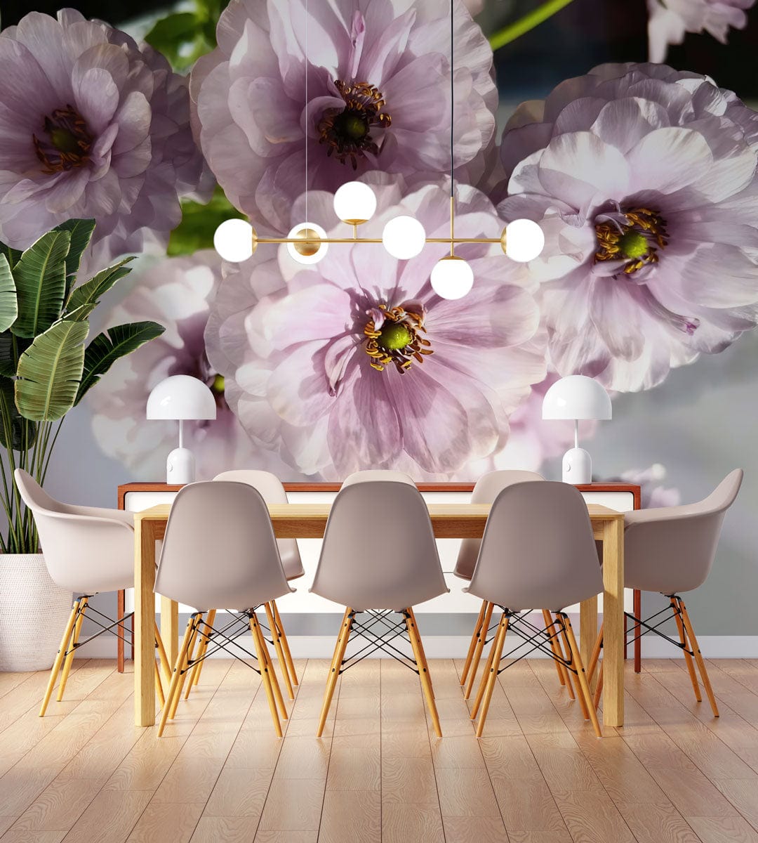 This Anemone Wallpaper Mural presents an exquisite floral design, showcasing delicate anemones in full bloom. The petals, painted in soft hues, create a graceful flow that blends seamlessly with various interior styles. Its textured details and elegant composition make it an ideal addition for spaces seeking a touch of natural sophistication.