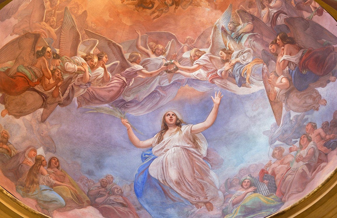 This exquisite Angelic Choir Wallpaper Mural captures a celestial harmony with its depiction of ethereal figures set against a heavenly backdrop. Featuring delicate shades of pastel hues, the artwork radiates a sense of peaceful elegance and timeless beauty, making it a perfect addition to sophisticated interiors.