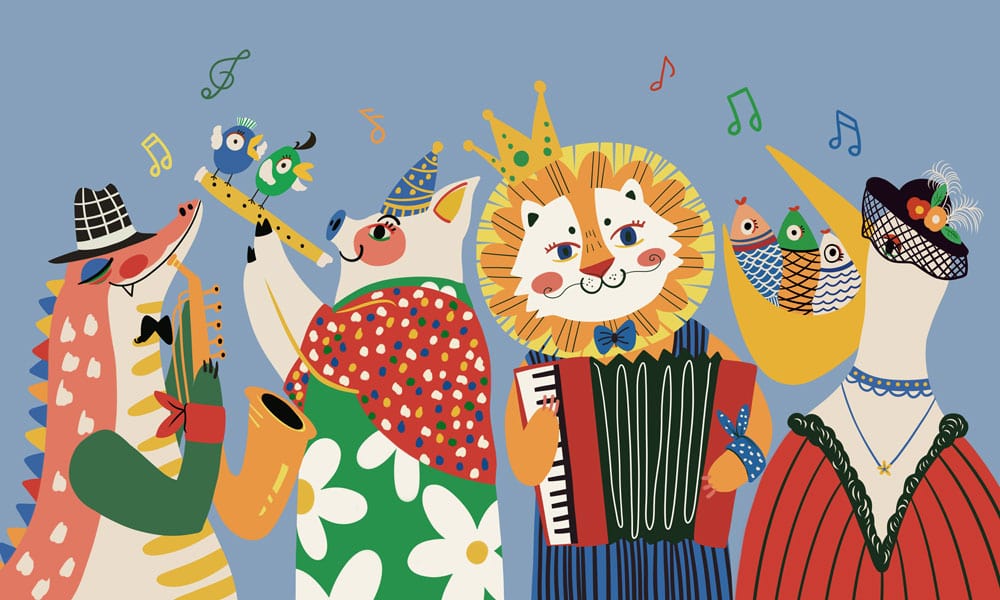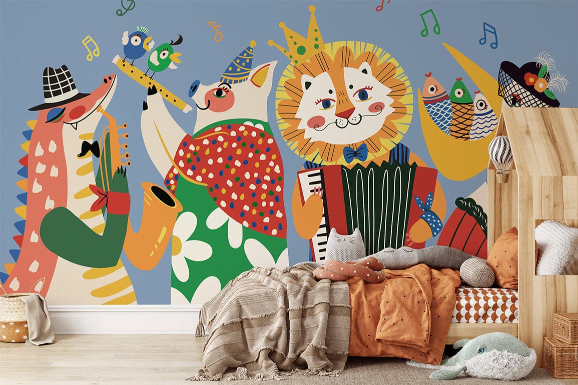 Enjoy the elegant beauty of this Animal Symphony Orchestra Wallpaper Mural, which features various majestic animals in their natural habitats. Specially designed to bring all the magic of an orchestra to your home, this nursery wallpaper mural will make a statement in your little ones' room. Create a focal point for your music room or add character to your kids' room walls with this attractive animal wallpaper mural.