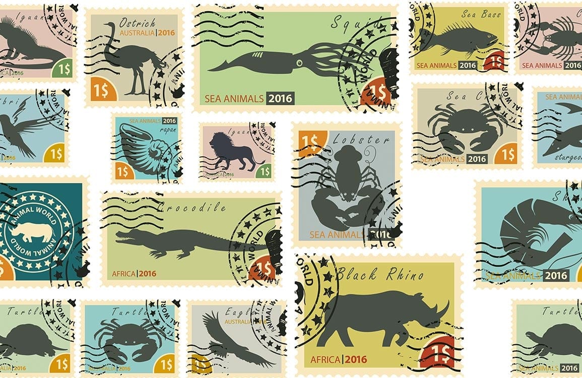 Animals Stamp Wallpaper Mural