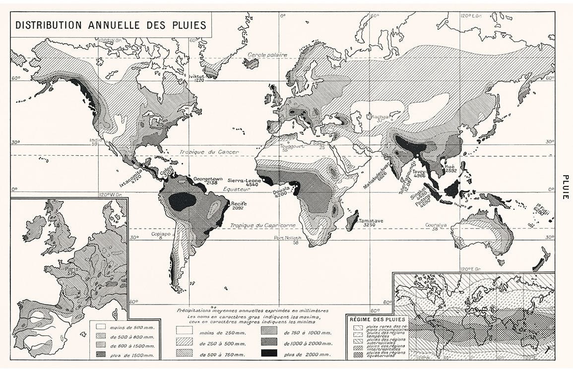 Immerse yourself in the world of intricate cartography with the Annual Rainfall Distribution Wallpaper Mural. This captivating design showcases an artful depiction of global rainfall patterns, seamlessly blending scientific accuracy with artistic flair. The delicate interplay of monochromatic shades and geometric forms offers a refined aesthetic that complements both contemporary and classic interiors.