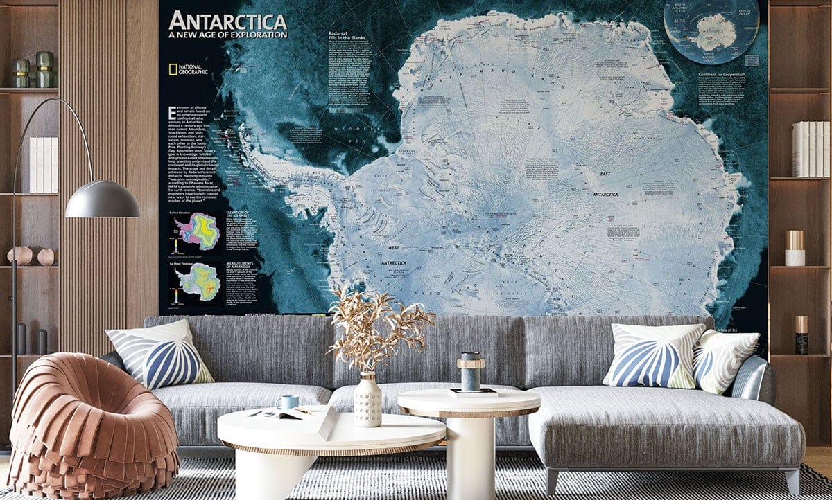 Get to know more about the world with our made-to-order Antarctica map wallpaper mural.This map wall mural is ideal for adding a splash of colour to any place in your bedroom or home office. Works well with modern style furniture of your choice.