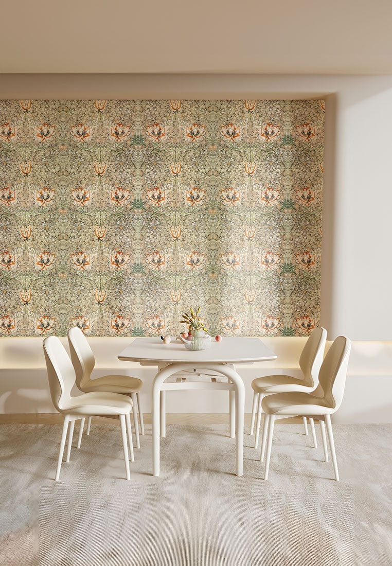 Drawing inspiration from classic art, the Antique Floral Tapestry Mural Wallpaper showcases an intricate design of delicate flowers and vines, woven into a sophisticated tapestry-like pattern. The muted, elegant tones create a serene and inviting atmosphere, offering a versatile addition to a wide range of interiors, from traditional to eclectic settings.