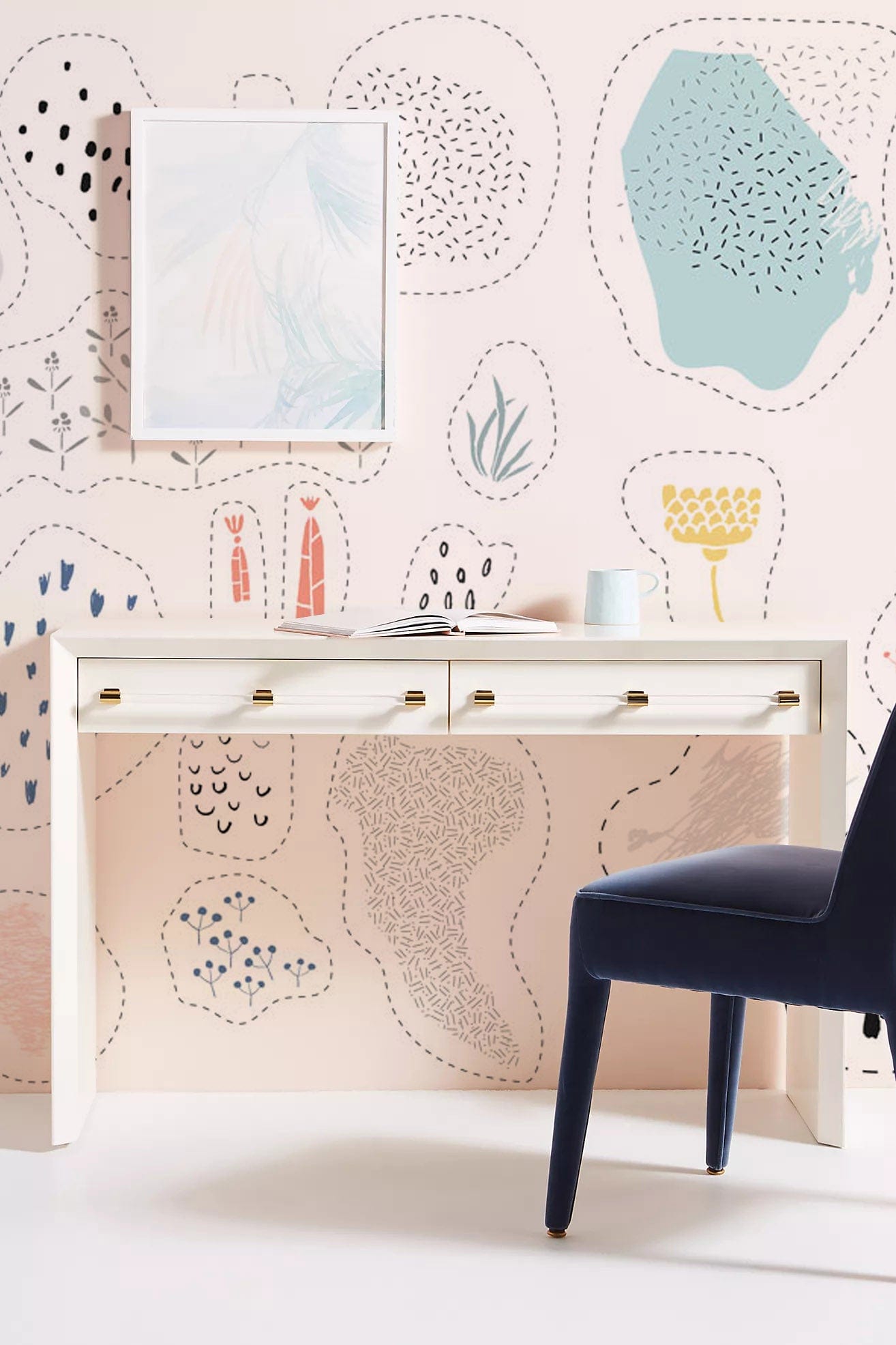 Bring your wall to life with these art deco plants wallpaper mural. Relieve your stress and enjoy the freshness from these leaves in soft pastel colours. Add a peaceful and calm atmosphere to your living room, bathroom, bedroom and dining hall. Work perfectly to your modern style furniture and home decors.
