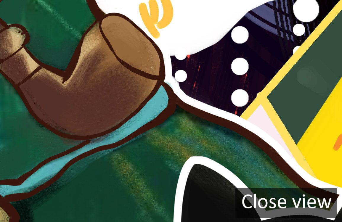 This Art Painting Wallpaper Mural captivates with its eclectic collage design, blending bold imagery with vibrant patterns. Featuring a sophisticated composition of whimsical cats and artistic motifs, it creates a visual narrative filled with intrigue and charm. With an array of colours and intricate detailing, this mural artfully fits into contemporary art spaces, adding a splash of creativity to any room.