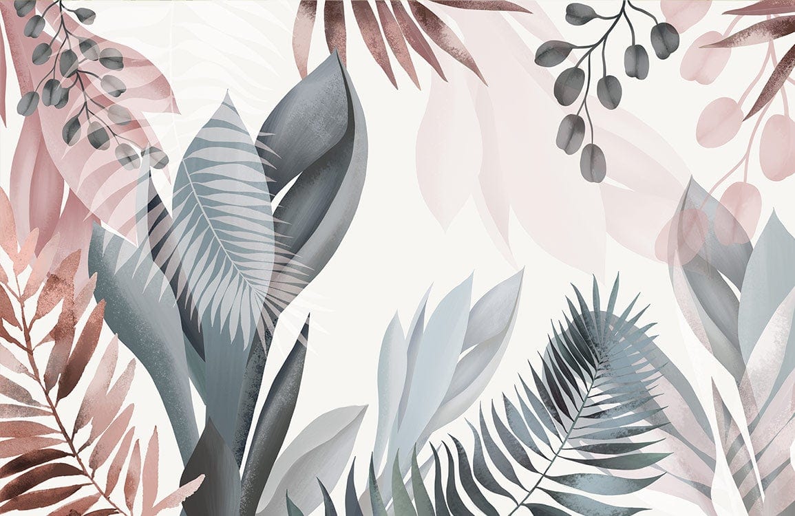 The Art Leaves Wallpaper Mural gracefully celebrates nature's elegance with its intricate botanical design, where overlapping leaves create a sophisticated tapestry. Soft hues and detailed textures evoke a serene and timeless atmosphere, making it an exquisite choice for any interior seeking a touch of refined artistry.
