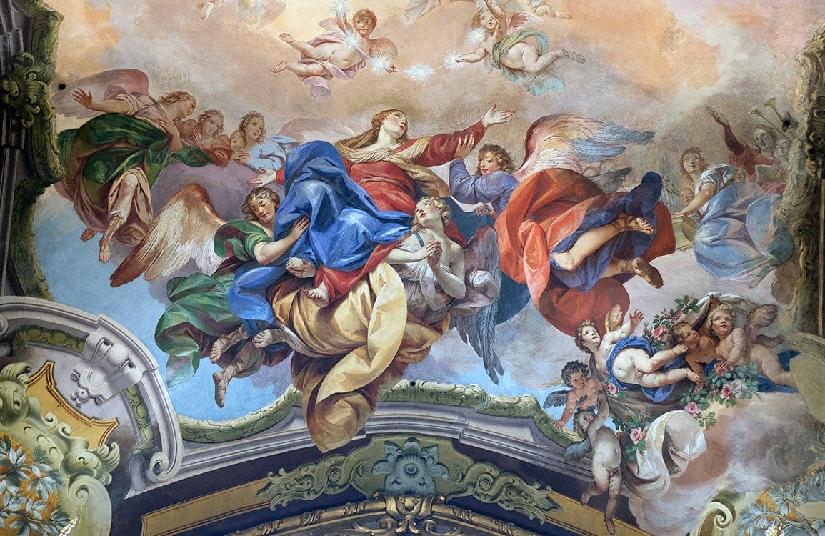 Immerse your space in the divine elegance of the Assumption Day of Mary Wallpaper Mural, featuring a heavenly tableau of angels and vibrant drapery. This mural offers an exquisite representation of classic artistry, where intricate details meld seamlessly with fluid forms, creating a celestial ambience that captivates and inspires. Perfect for adding a touch of sophisticated grace, it harmonises beautifully with both traditional and contemporary interiors.