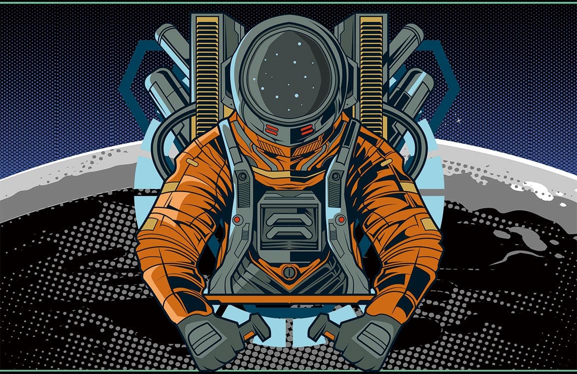 This Astronaut Strength Wallpaper Mural will instantly give your room a space-age feel. This wallpaper is unique and imaginative with a lively image of a strong and cool astronaut in the center and a small part of his rocket in the background. Create a one-of-a-kind conversation piece with this chic wallpaper mural that is sure to impress anyone who walks into your home or office, especially if they are a fan of classic sci-fi films.