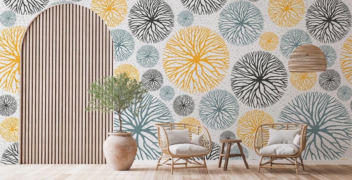 A very old myth says that the Athenia was the sacred tree of the goddess Athena and Athens. It is full of life and very historical symbol to the Greeks. This mural wallpaper of colourful athenia tree cuts will fill your place with very special vibes of power and elegancy. This design is full of life and will make your place look wider and brighter. Style it with modern decorations and chiffon curtains for a flowy full of life look.