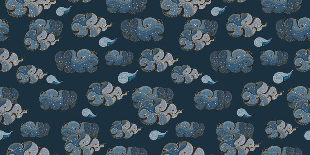 Awaken your space with this Auspicious Clouds Wallpaper Mural. This wallpaper will make your room a welcoming oasis of calm and is sure to be the talk of your guests when they come by. This creative mural adds the perfect style and touch to any area and is a perfect addition to your home or office. It will bring uniqueness and personality to your house while offering an elegant accent in your room. Decorate your home with this dreamy art deco wallpaper now.