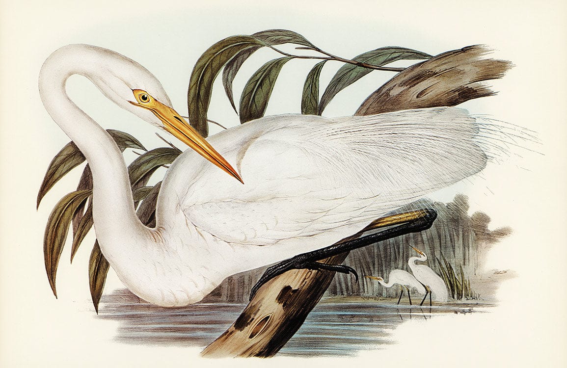 A captivating depiction of nature, the Australian Egret ll Wallpaper Mural presents a sophisticated scene of tranquil elegance. The detailed illustration showcases a poised egret perched amongst delicate foliage, exuding a sense of calm and serenity. Ideal for those seeking a touch of nature's artistry, this mural gracefully complements both classic and contemporary interiors, offering an exquisite backdrop for any setting.