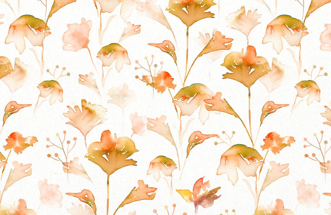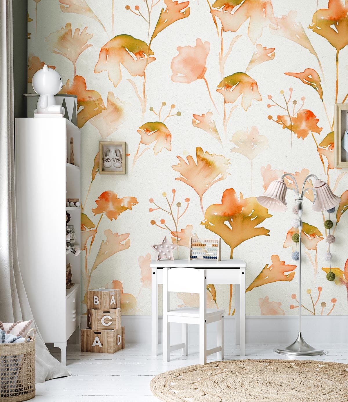 Immerse your space in the elegant embrace of autumn with this exquisite wallpaper mural, where delicate leaves and subtle floral patterns intertwine in a symphony of warm hues. The intricate brushstrokes form a tapestry that evokes the gentle flutter of falling leaves, creating a serene yet sophisticated ambience. Perfectly suited for both modern and classic interiors, it adds a timeless charm to any room.
