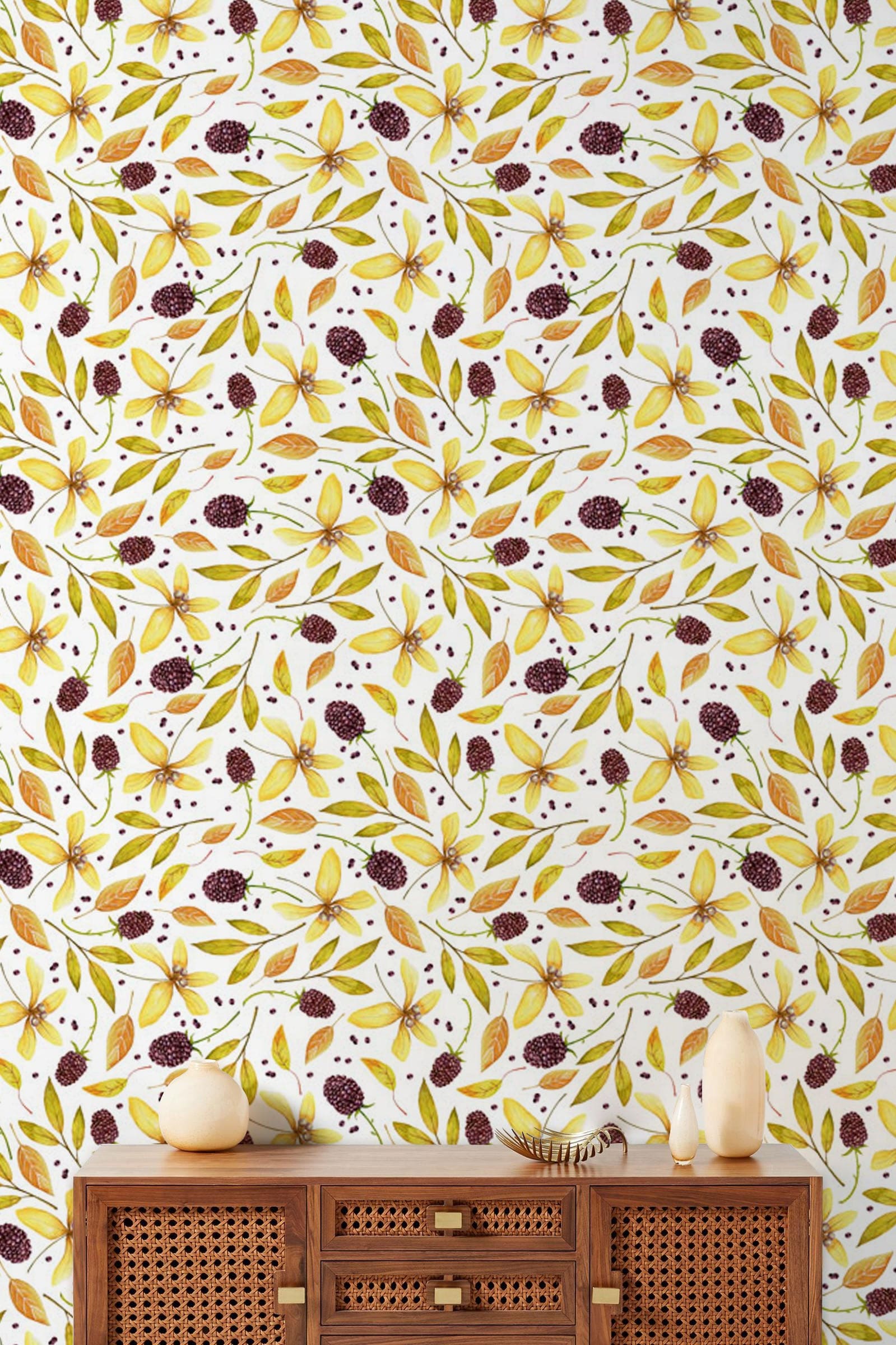 Create a gorgeous space with our leaf and pine cone wallpaper mural. This wall mural is designed with repeated pattern of small autumn leaf and pine cone in white background, which will bring a vintage yet fresh look to your space. Perfect wallpaper that works well with all your bedroom, living room, kitchen and dining hall.