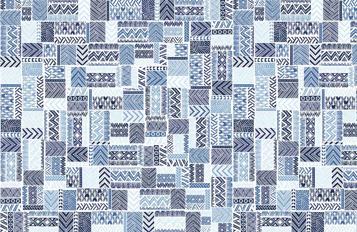 Immerse your space in a tapestry of cultural artistry with the Aztec Patchwork Wallpaper Mural. This exquisite design showcases an intricate mosaic of geometric patterns, expertly blending timeless Aztec motifs with contemporary flair. The vivid interplay of blue hues and subtle grey accents create a harmonious balance, making it an ideal choice for those seeking to add depth and texture to their interiors. Its complex yet orderly arrangement feels both lively and sophisticated, suitable for a variety of settings.
