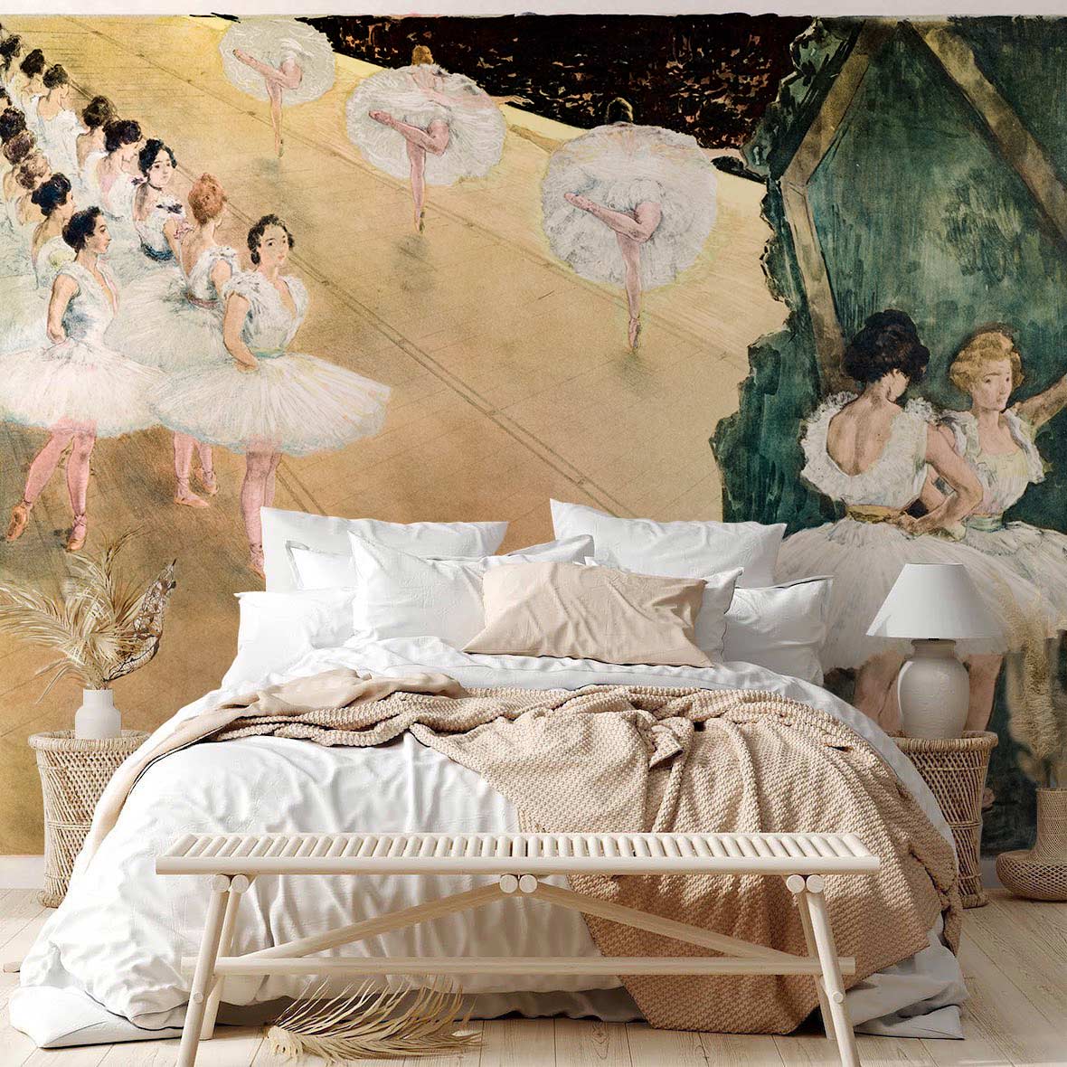 Immerse your space in artistic elegance with the Ballet Dancers Wallpaper Mural. This masterpiece captures the delicate poise of ballerinas, portrayed in soft brushstrokes that evoke a sense of movement and grace. The muted earth tones and gentle pastels blend seamlessly, creating an ambience of timeless sophistication. Perfect for adding a touch of artistry to both contemporary and traditional interiors.