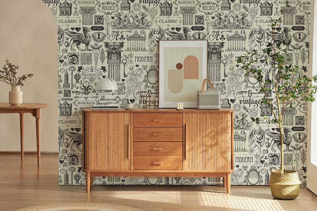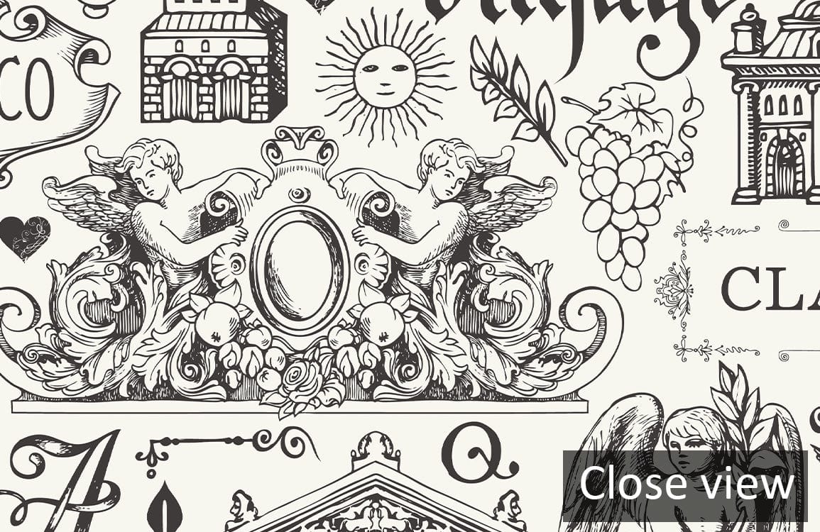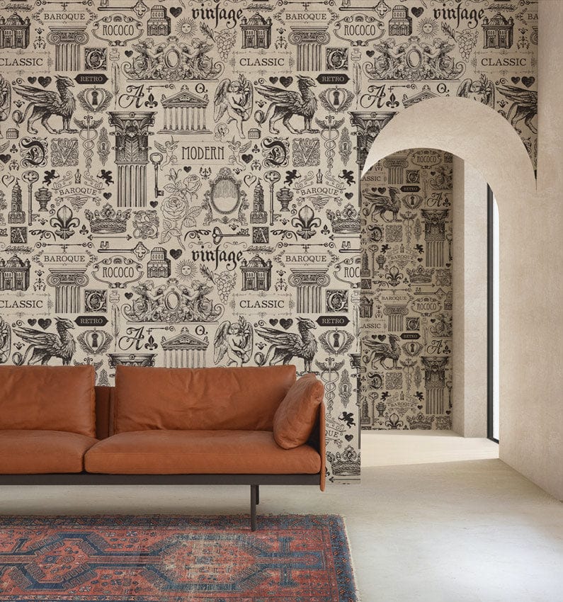 Embrace a world of artistic elegance with the Baroque Collage Charm Mural Wallpaper. The intricate motifs draw inspiration from historical themes, seamlessly weaving vintage illustrations with detailed classic elements. The delicate fusion of typography and ornamental designs creates a layered texture that speaks to those with an appreciation for fine art and storytelling. This wallpaper promises to lend a sophisticated air to any room, inviting admiration and conversation.