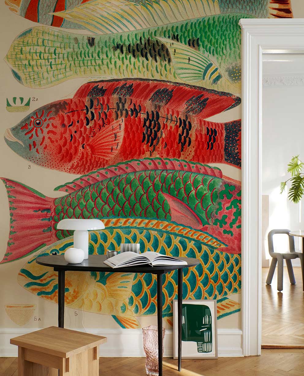 Give your kids a new bedroom decoration style with this Barrier Reef Fishes mural wallpaper with the very strong pallete shades that will take the room to next level of elegancy. The shades of the mural in the wild red and green are making a good contrast and will add a cheerful vibe to your kids place. The mix of the palette shades will make the room brighter specially at day light. Style it with white and caramel wooden furniture for the perfect results.