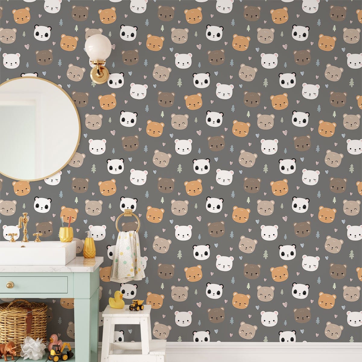 If you or your kids love bear & panda, then this lovely cartoon wallpaper mural will be a perfect choice for your interiors. This adorable bear & panda pattern design under soft grey background is suitable for all your bedroom or kids/nursery rooms. Place this wall mural to your wall and enjoy the happiness and joy it brings to you and your children.