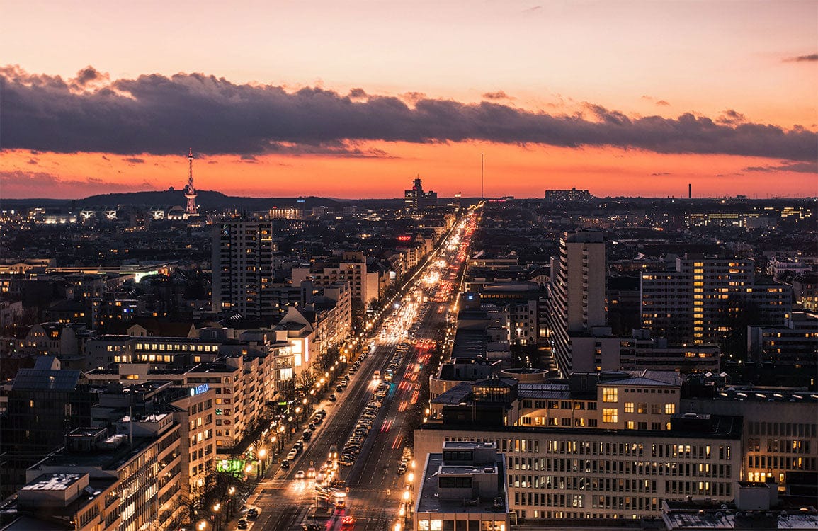 Transform your bedroom into a cozy and warm haven with the Berlin Night Wallpaper Mural. This mural wallpaper features an overlooking view of the nighttime in Berlin, depicting the city's usual cityscape. The design is sure to add a touch of sophistication and elegance to any room. Whether you are looking for an accent piece in your study or a focal point for your living room, this wall decor will fit any interior style. It's a great addition to your home, giving you the feeling that you are somewhere else when you look at it.