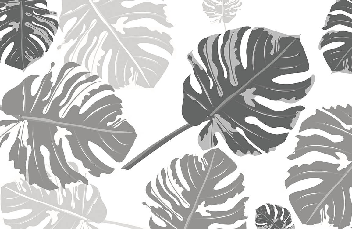 Create a unique and stylish space with this tropical leaf wallpaper. Get an ideal palm leaf and tropical feature wall with this amazing grey leaves wall mural. Ideal wallpaper for your living room, bedroom or bathroom. This tropical jungle theme wallpaper would look great when pair with modern furniture styles.?