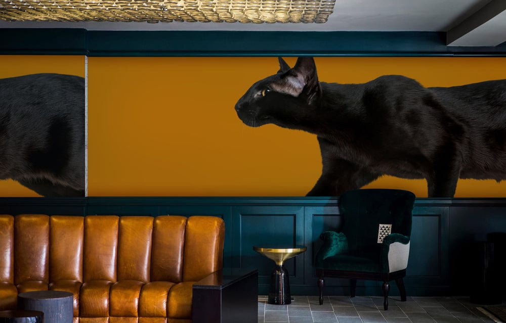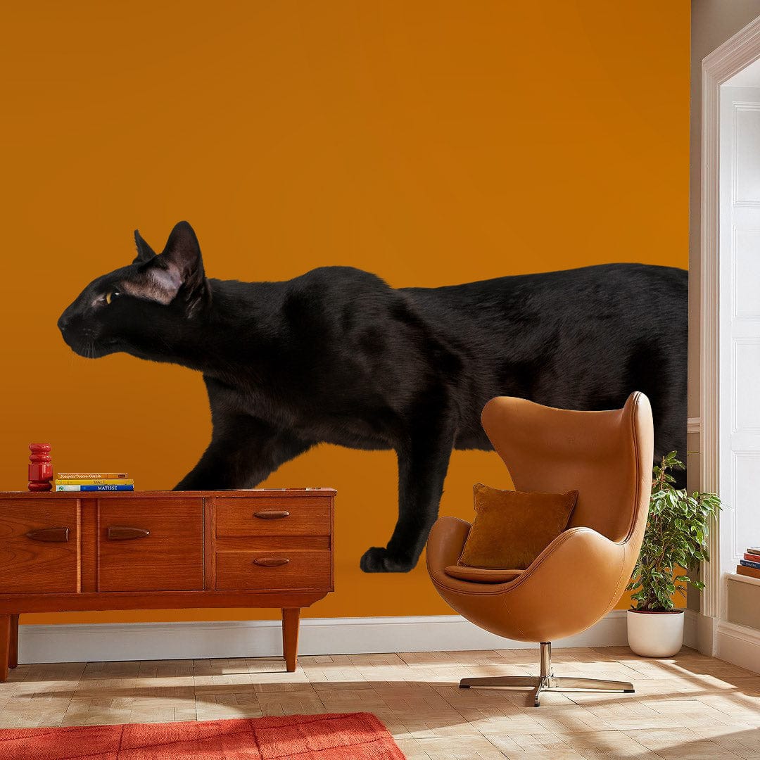 The Black Cat King Wallpaper Mural is a great option for your next wall d茅cor. This mural features a black cat, king of the jungle, looking so regal and commanding. A beautiful detail that can be used by itself in one room or added to an entire house to create a beautifully eccentric theme against white walls, this orange wallpaper is perfect for those who have a love for cats and the playful tones of black. With its low cost and easy installation, it's a useful addition to any room to make it look different.