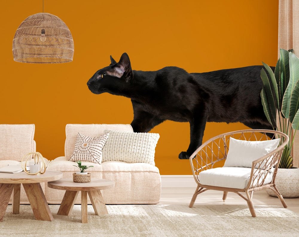 Immerse your space with the captivating allure of the Black Cat King Wallpaper Mural. This striking design features a sleek black cat poised gracefully against a rich, warm mustard backdrop, creating an artistic focus that enchants the eye. The mural's sophisticated composition effortlessly integrates into various interior styles, offering a touch of timeless elegance and a sense of mystery. Ideal for those seeking a unique yet subtle statement piece.