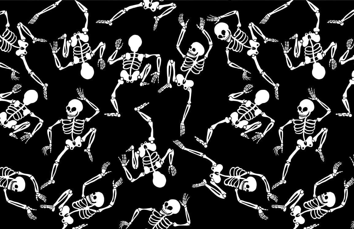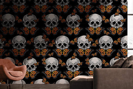 This Skeleton Art Wallpaper Mural captures a dynamic dance of skeletons against a deep black canvas, presenting a mesmerising interplay of monochrome contrasts. Ideal for those seeking a bold statement piece, it infuses spaces with an artistic edge and timeless intrigue. Its intricate details and playfulness make it perfect for diverse interior aesthetics, adding a touch of sophistication and whimsy to any room.