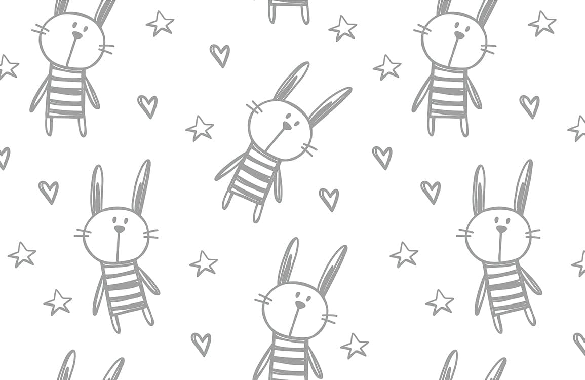 Infuse a playful yet sophisticated charm into your space with this Black & White Bunny Wallpaper Mural. Featuring whimsical bunny sketches interspersed with stars and hearts, its monochrome palette exudes an elegant simplicity. The artistic design balances modern minimalism with a touch of nostalgia, making it a delightful addition to nurseries, playrooms, or even creative workspaces, where a hint of imagination is welcomed.
