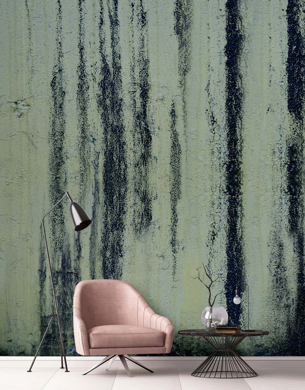 Experience the alluring depth of the Blackened Green Paint Wallpaper Mural, where rich textures emulate a captivating distressed effect. Subtle black streaks cascade down a verdant green backdrop, creating an exquisite display of artistic drama and timeless elegance. Perfect for injecting a touch of sophistication into diverse settings, this mural evokes a sense of refined tranquility.