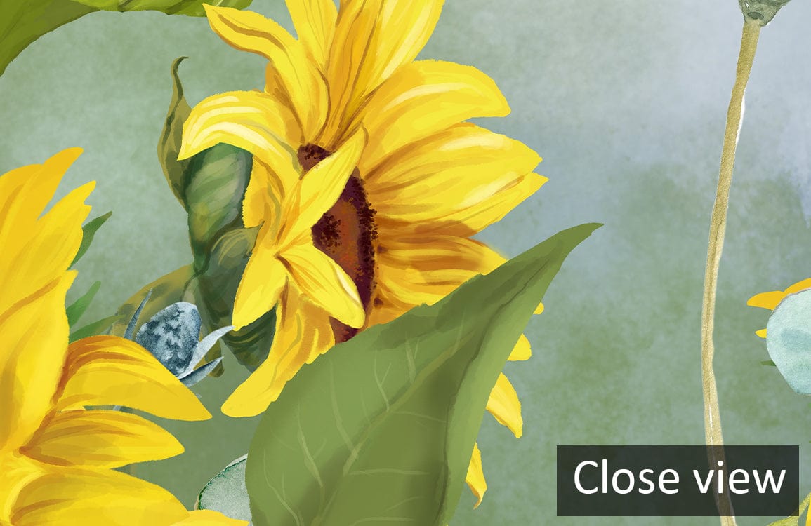 If you seek a not so traditional and more lively wallpaper, then our Bloomy Sunflowers Wallpaper Mural will be the one to suit your taste. Its warm tones and large-scale petals create a dynamic accent in any room. The sunflower flowers in this mural wallpaper are painted with a cheerful sunny yellow and brown colour to ensure that your rooms will always be full of positive vibes. This mural wallpaper takes you to a field of sunflowers, where the blooms are swaying in the wind and letting off a beautiful scent.