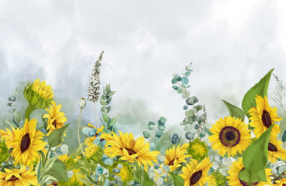 Immerse your space in the vibrant elegance of the Bloomy Sunflowers Wallpaper Mural. Featuring lush sunflowers in full bloom against a serene backdrop of delicate greenery, this mural evokes a sense of natural splendour. Each sunflower stands tall amidst wispy grasses, creating a harmonious visual narrative that seamlessly complements both classic and contemporary interiors.