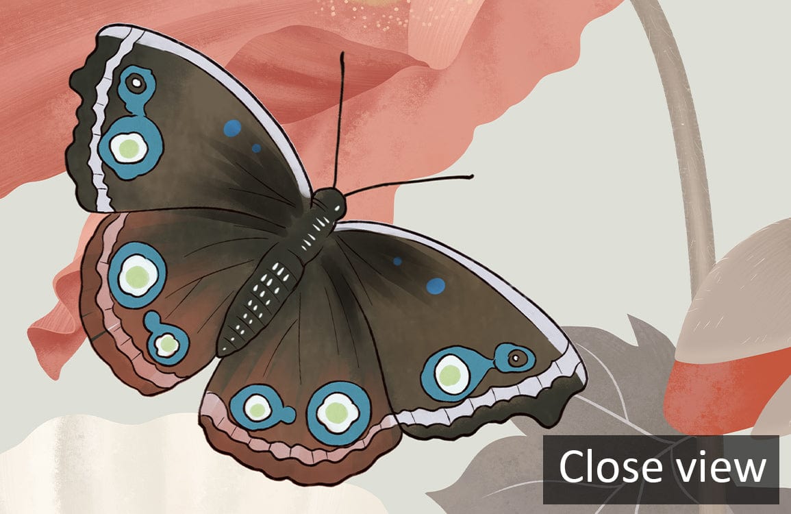 Immerse your space in the graceful allure of the Blossom Aroma Wallpaper Mural. Its delicate floral design features elegant poppies intertwined with fluttering butterflies, evoking a serene garden beneath soft sunlight. The mural's seamless blend of warm corals and gentle creams adds a sophisticated touch to any interior, inviting a sense of timeless beauty and tranquillity.