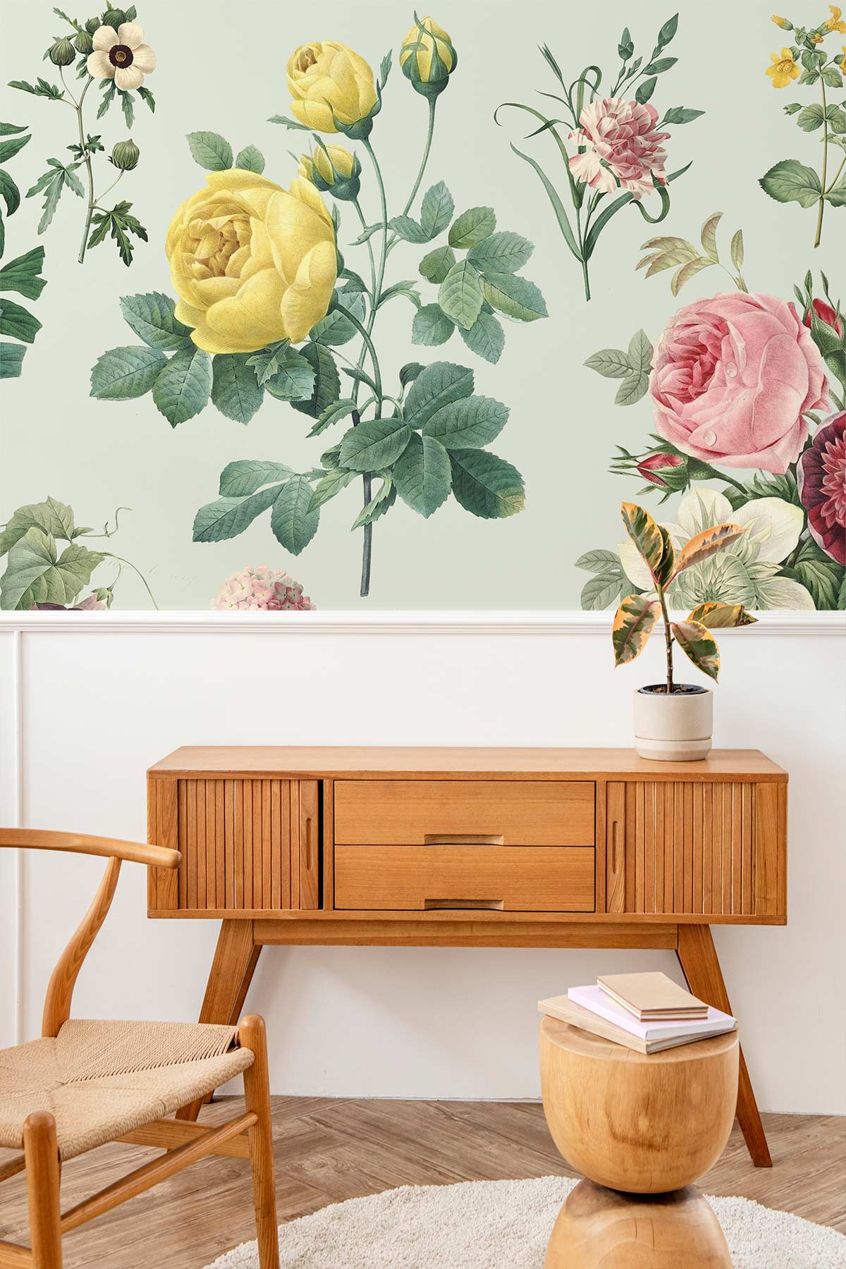 Immerse your space in the timeless elegance of the Blossoms Collection Wallpaper Mural, where delicate floral artistry meets subtle sophistication. Each bloom is meticulously detailed, showcasing vibrant roses, peonies, and wildflowers against a soft, understated background. This mural brings a garden of tranquillity indoors, perfect for creating a serene ambience in a variety of interior settings.