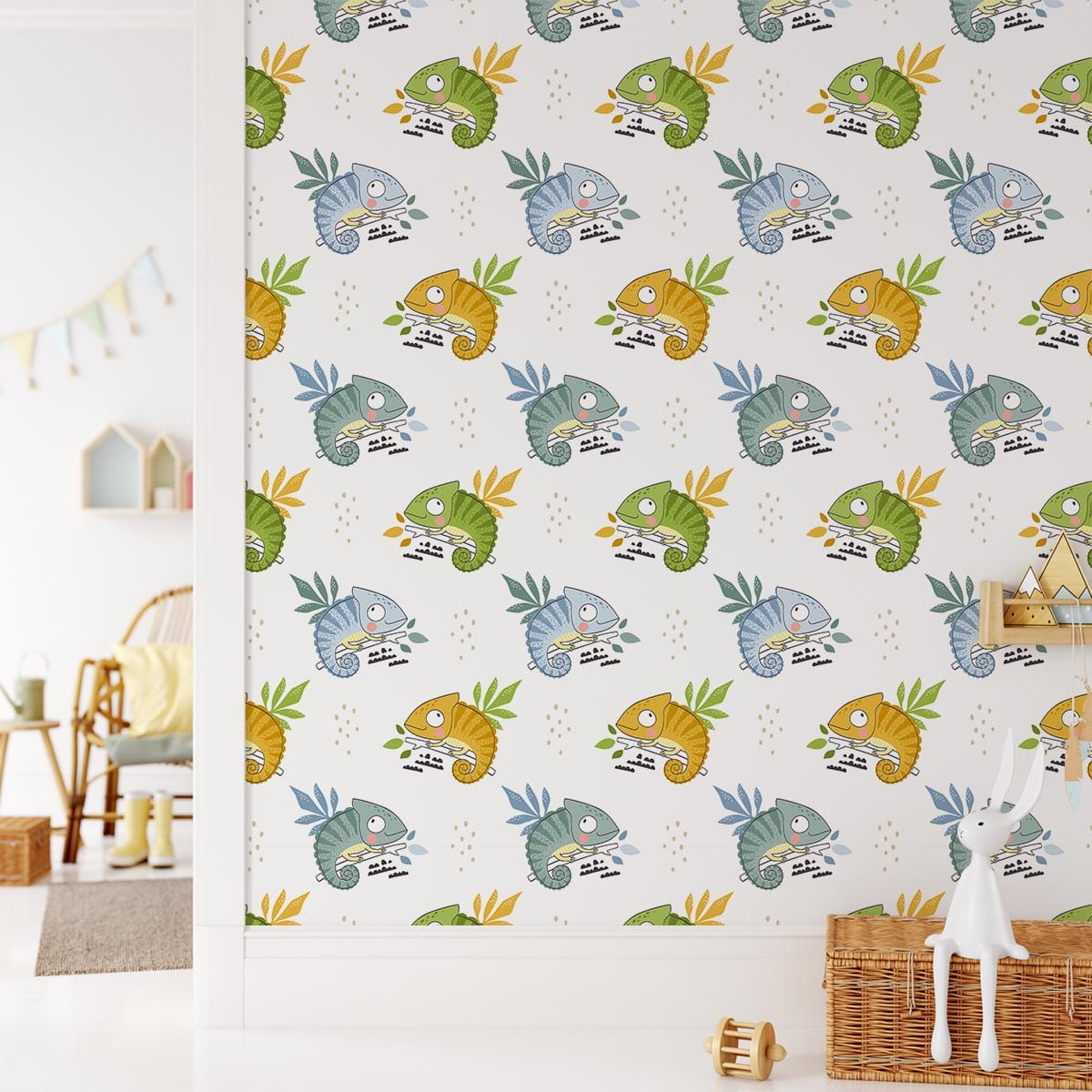 You'll fall in love with our Colorful Lizard Mural Wallpaper, which features a range of green, yellow, and blue lizards who dream they are real! This colourful wall mural will transform your child's room into a fun, happy place that they will love to play in. The retro embossed style will perfectly match traditional wooden furniture while refreshing your room with a cool and tranquil colour combo. Bring this lizard home and transform your room into a vivid paradise.