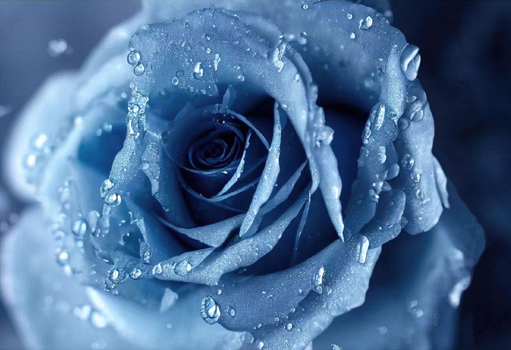 The Blue Enchantress Wallpaper Mural captivates with its exquisite depiction of a dew-kissed rose, bringing a serene and timeless elegance to any space. The delicate play of light on the petals and the intricate water droplets create a rich tapestry of textures that engage the senses. This mural's sophisticated allure makes it an ideal choice for both modern and classic interiors.