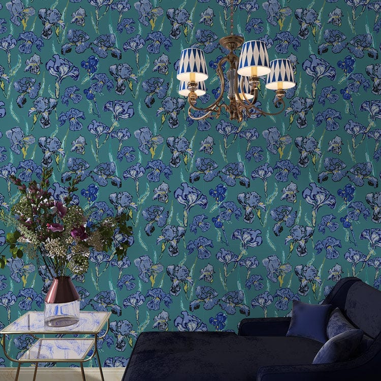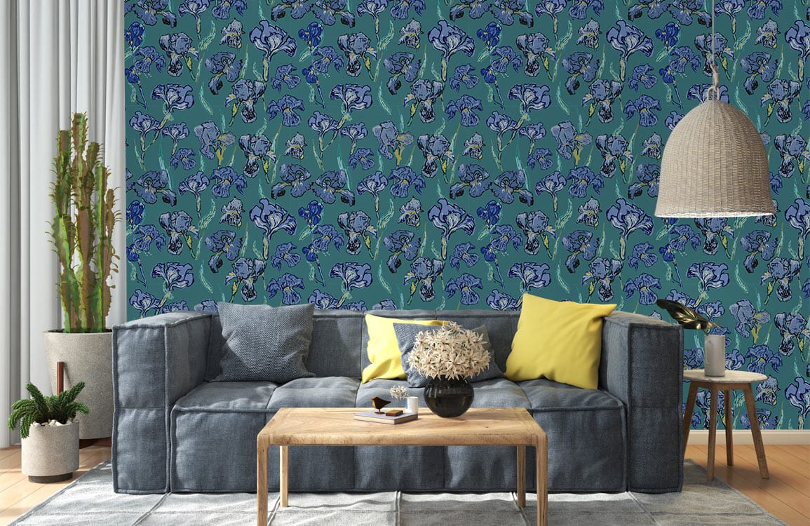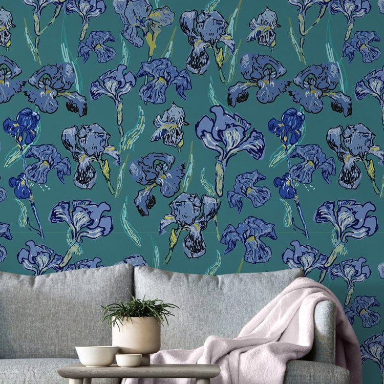 Blue Iris Haven Mural Wallpaper offers an exquisite tapestry of lush flora in soothing shades, capturing the delicate elegance of iris blooms against a verdant backdrop. Crafted with intricate patterns and rich textures, this mural evokes a serene and timeless ambience. Perfectly suited to both classical and contemporary interiors, it imbues any room with a sense of natural beauty and sophistication.