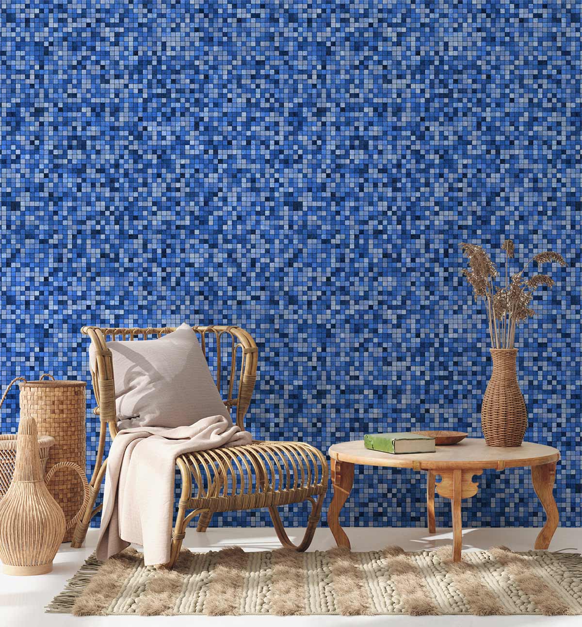 Discover the Blue Mosaic Wallpaper Mural, where intricate patterns of interlocking tiles create a mesmerising tapestry of art. With its rich hues and delicate pixelated textures, this mural brings a sense of depth and originality to any interior. Perfect for both classical and contemporary tastes, it offers a luxurious backdrop that captivates the eye and complements a variety of furnishings.