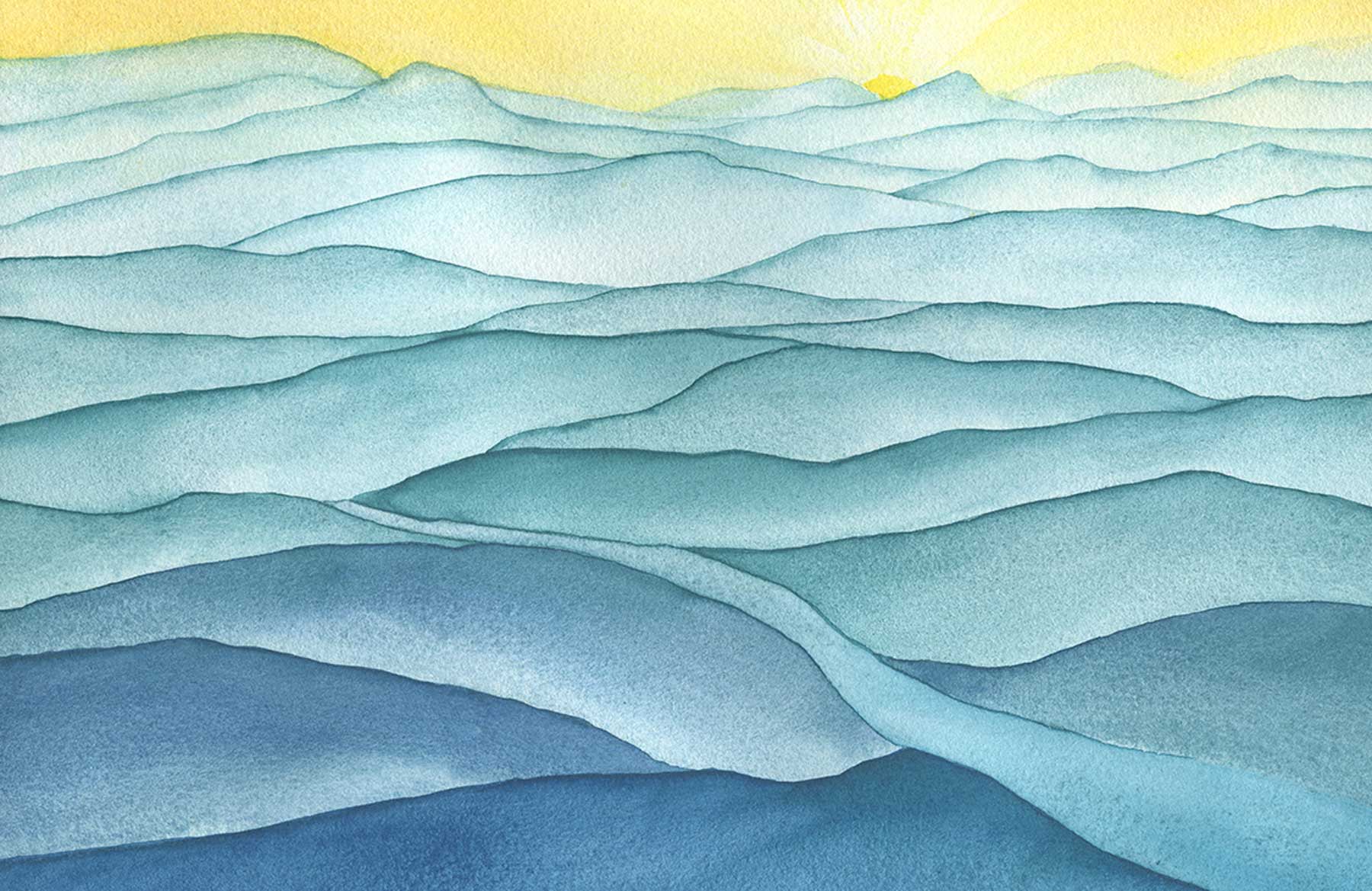 Open up your space with this blue rolling mountain range wall mural.The soft blue and creamy yellow mountain designed in water colour effect wallpaper can light up space within minutes and add a charming feel to your bedroom, living room or dining area. Compliment the look with modern furniture for a beautiful and dramatic effect.